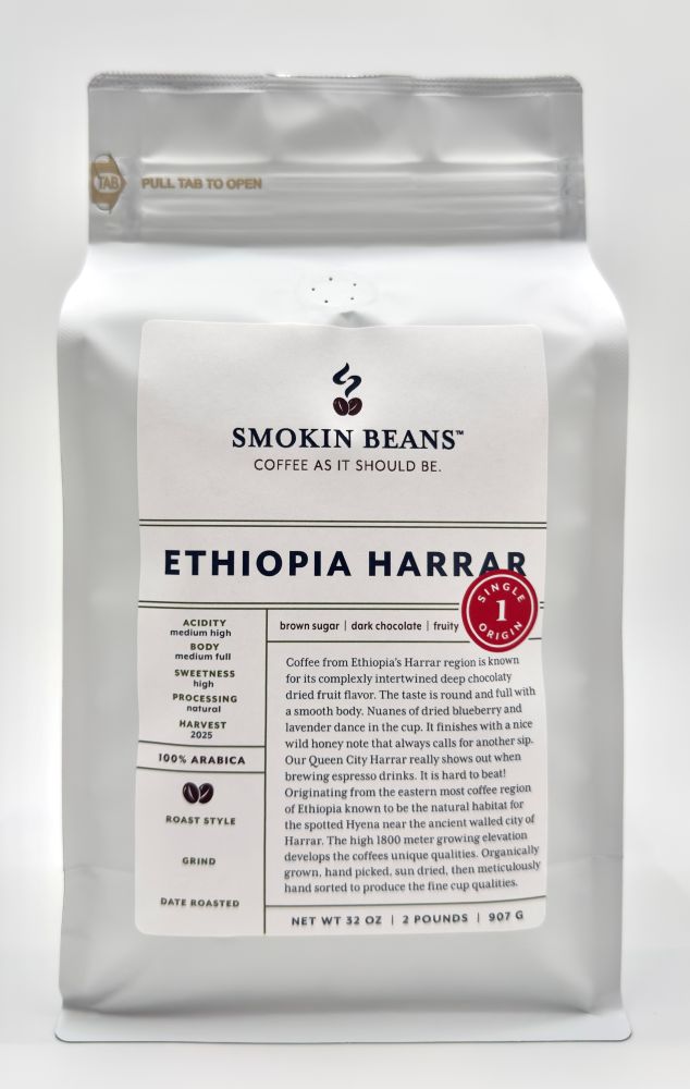 Harrar is one of Ethiopia’s eastern-most coffee producing regions. In a region famous for its spotted hyenas, near the ancient walled city of Harrar. This is where the high growing elevations of around 1,800 meters produce some exceptionally fine espresso coffees. This sun-dried natural is sourced from select farms in the region, the cherries are meticulously hand sorted, dried, milled and hand sorted again the bring out fine cup quality. This coffee is sustainably grown using natural composts and other organic fertilizers. The coffee is hand-picked, naturally processed, and sun-dried on raised African drying beds. A highly regarded, exotic Ethiopian coffee that is well balanced with good chocolate notes and is often considered a premium espresso coffee.