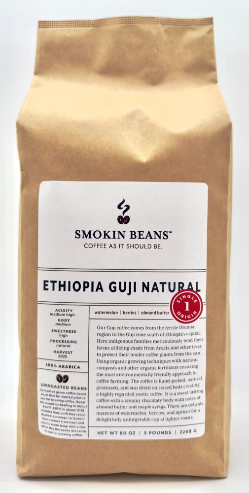 This Guji “Hambela” farm is located in the fertile Oromia regional State, in Guji zone, between the two districts of Gedeb and Hambela, approximately 477 km (297 miles) South of Addis Abeba (the Capital of Ethiopia), and 20 km (12.5 miles) East of Dimtu Town (the capital of Hambela). The farm is 200 hectars (494 acres) in size and is meticulously operated by several indigenous families. The coffee farm utilizes shade (acacia and other indigenous trees) to protect the coffee plants. This coffee is organically grown using natural composts and other organic fertilizers. The coffee is hand-picked, fully washed, and sun-dried on raised African drying beds. A highly regarded organically grown, exotic coffee. The washed processing provides an exceptionally clean tasting cup, with a bright citrus acidity and a smooth mouthfeel.
